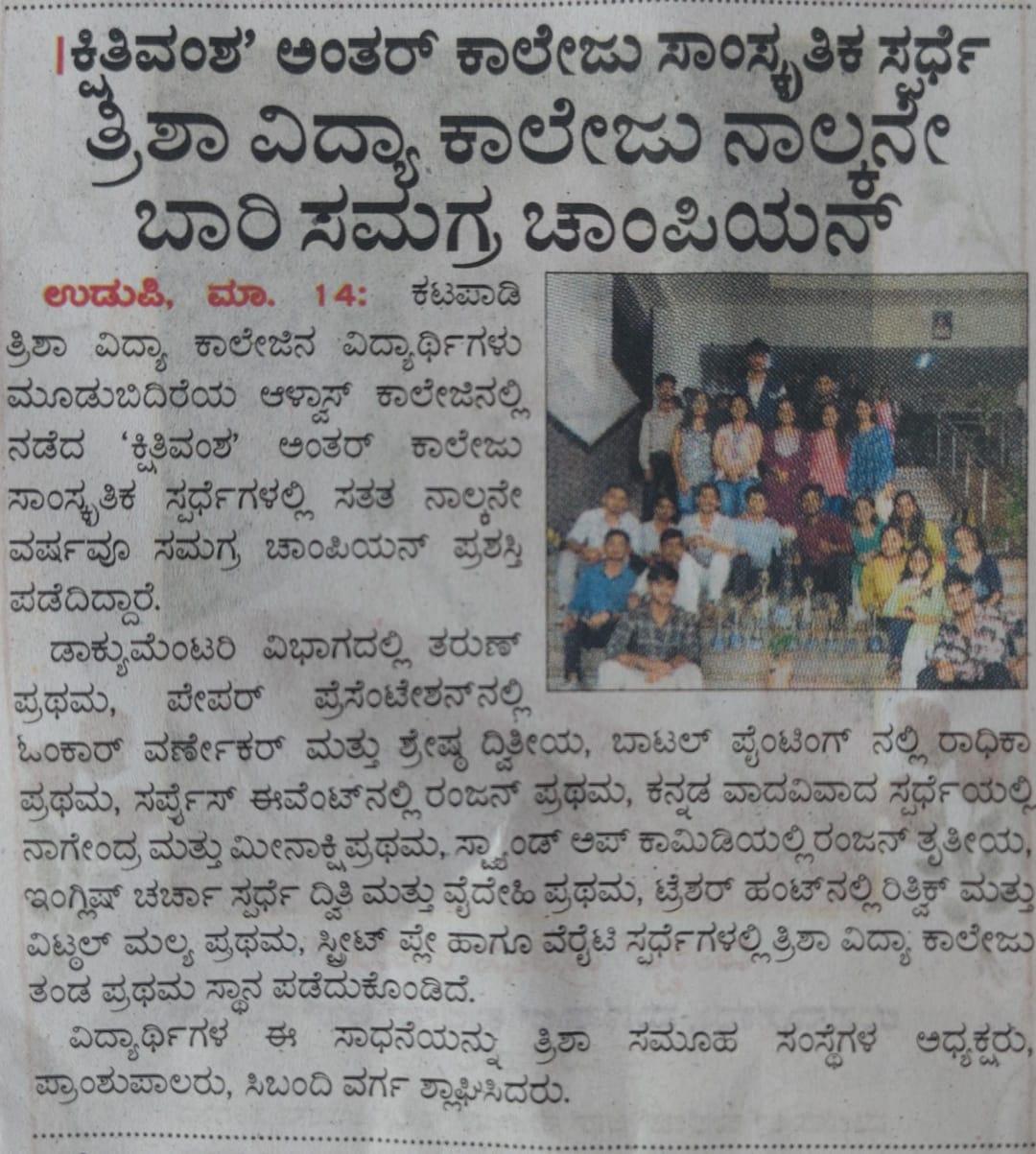 Four-Year Streak! Trisha Vidya College Wins Overall Championship at ‘Kshitivansh’