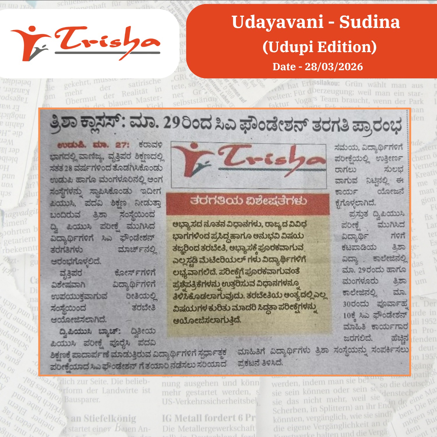 CA Foundation Classes to Commence from March 29 at Trisha Classes